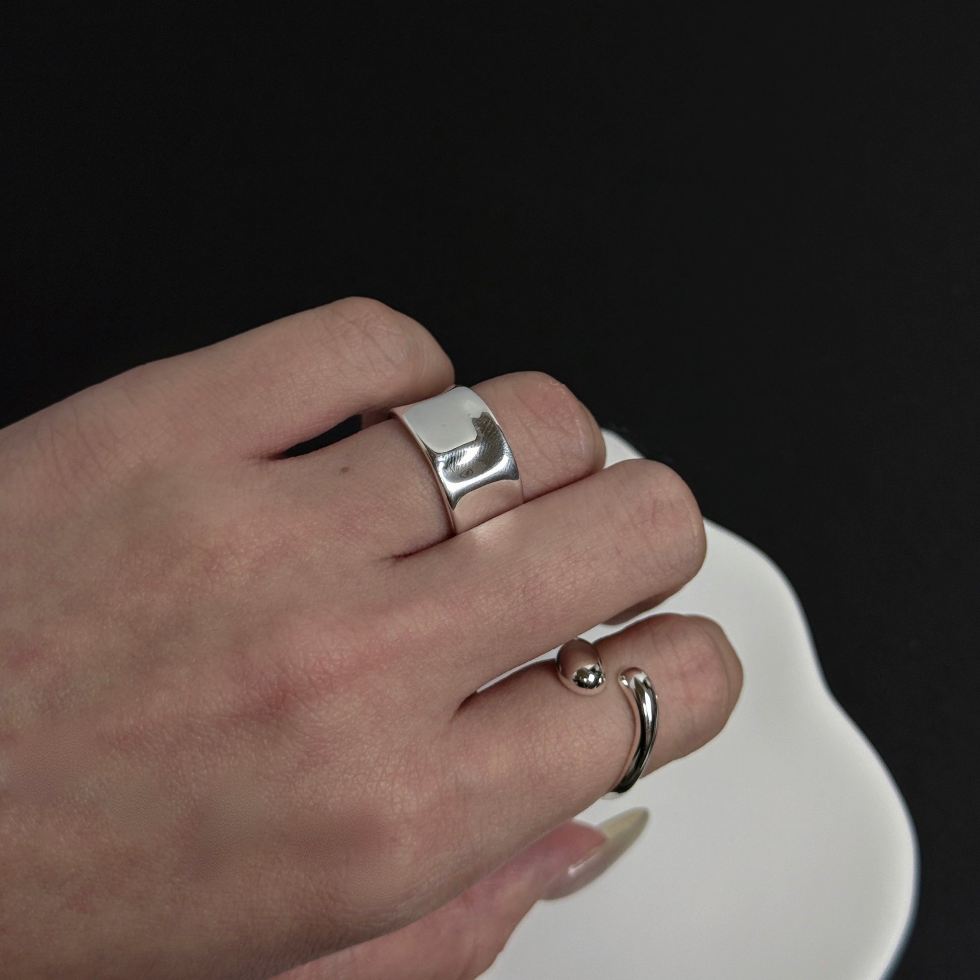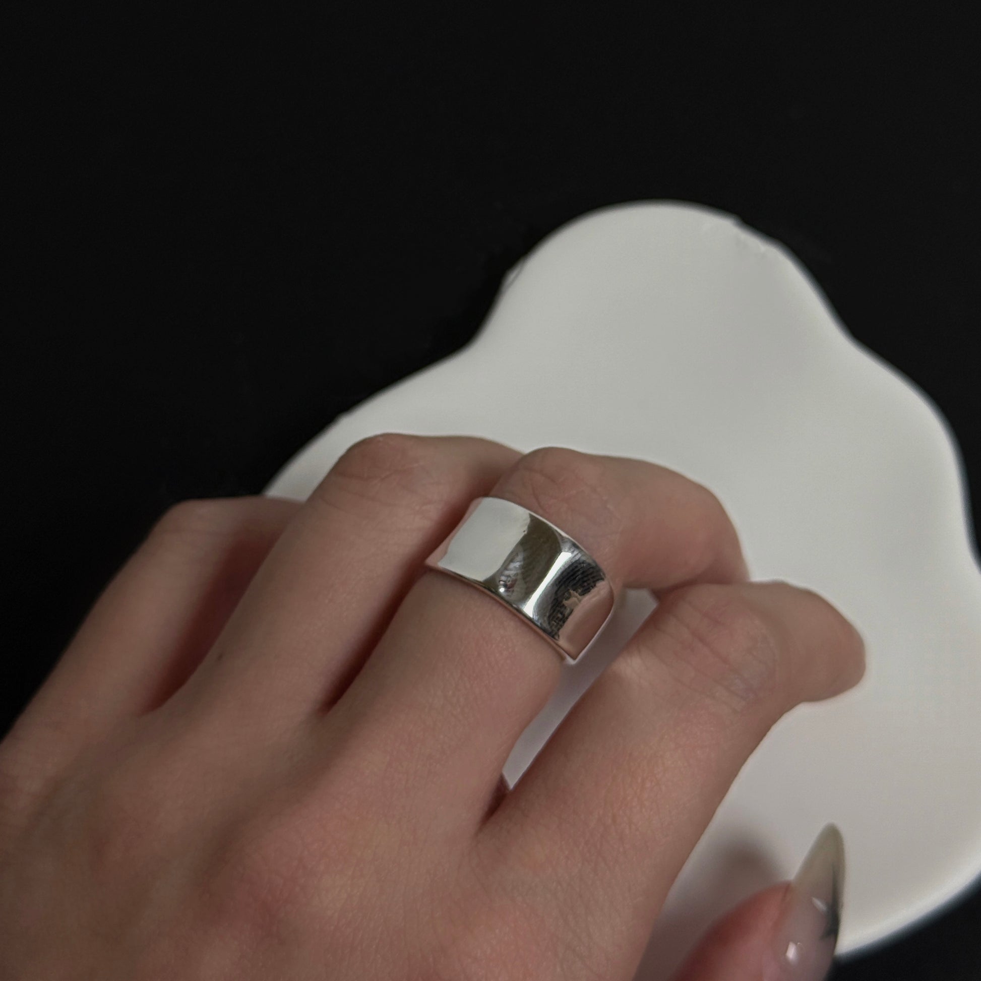 925 啞光寬版凹面戒指